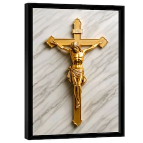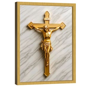 Quadro Decorativo Jesus na Cruz Dourado Moldura Dourada e Vidro - 150x100cm -