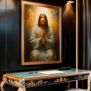 Quadro Decorativo Jesus Oração Artístico Moldura Dourada - 84x54cm -