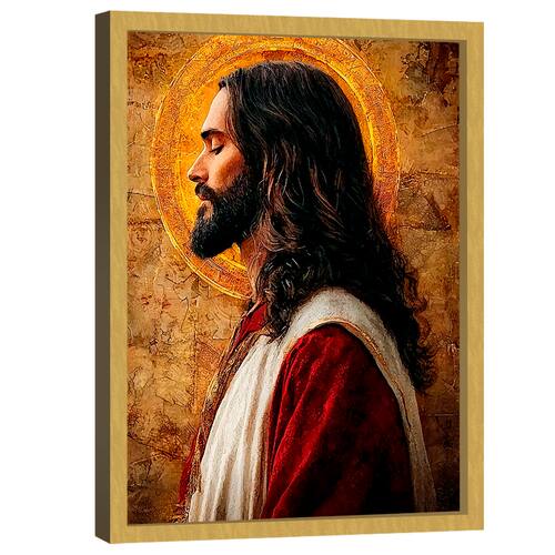 Quadro Decorativo Jesus Perfil Moldura Dourada - 118x78cm -
