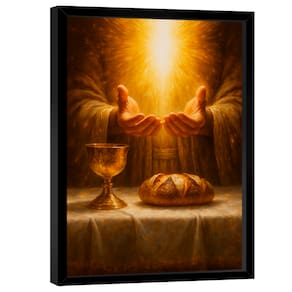 Quadro Decorativo Jesus Tomou o pão, Abençoou-o Moldura Dourada - 60x40cm -