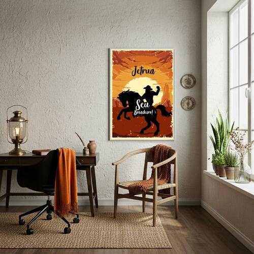 Quadro Decorativo Jetrua - Seu Boiadeiro! - 70x50cm - Cor: Moldura Preta