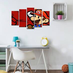 Quadro Decorativo Jogo Super Mario Fundo Vermelho 5 Peças