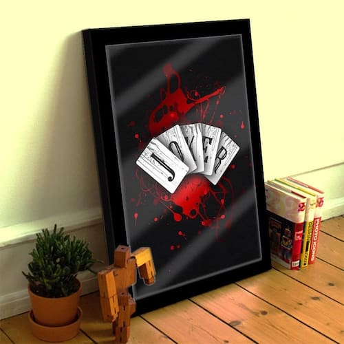 Design Criativo: O quadro apresenta cinco cartas de baralho dispostas de forma a formar a palavra "JOKER", criando um efeito visual intrigante e sofisticado. Materiais de Qualidade: Com uma moldura robusta e vidro protetor, o quadro oferece durabilidade e um acabamento refinado, preservando a beleza da arte por muito mais tempo. Versatilidade: Perfeito para ambientes de trabalho, salas de reunião ou até mesmo para um canto especial da sua casa. Ele se adapta bem a diversos estilos de decoração, especialmente os mais modernos e arrojados. Pronto para Pendurar: A instalação é simples e prática, permitindo que você transforme seu espaço rapidamente.