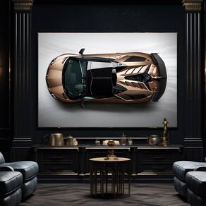 Quadro Decorativo Lamborghini Aventador Moldura Preta e Vidro - 118x78cm -