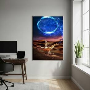 Quadro Decorativo Lâmpada Mágica do Gênio - 70x50cm - Cor: Moldura Branca