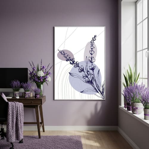 Quadro Decorativo Lavanda Pintada 70x50cm Mold Branca
