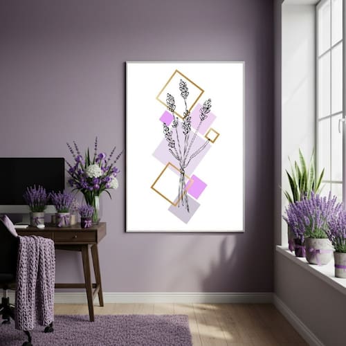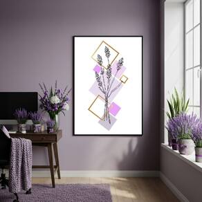 Quadro Decorativo Lavanda Quadricular - 70x50cm Mold Branca