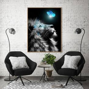Prepara-se para transformar seu espaço com nosso quadro decorativo de leão, uma peça única que é ideal para quem curte decoração minimalista para sala de estar, quarto ou até mesmo para entrada de hall e escritório. A combinação do leão com a borboleta vibrante é como força e beleza dançando juntas. E o melhor: o nosso quadro com leão olhando para a borboleta é feito com materiais de alta qualidade e com entrega rápida.