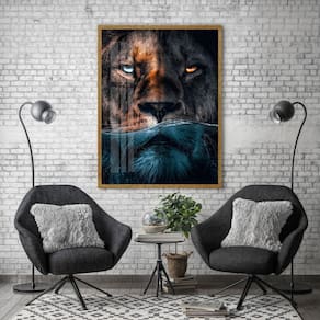 Imagine-se mergulhando nas águas calmas, onde o olhar intenso e majestoso de um leão encontra o seu. Ideal para decoração de interiores minimalista, este quadro decorativo com detalhes realistas traz vida à imagem, destacando-se como o ponto focal de qualquer ambiente, seja na decoração para sala de estar, escritório, quarto ou na decoração para hall de entrada. O quadro de leão não é apenas uma declaração de bom gosto, mas também um lembrete diário para viver com ousadia!