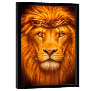 Quadro Decorativo Leão Celestial Moldura Preta e Vidro - 150x100cm -