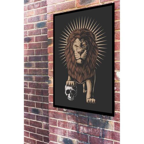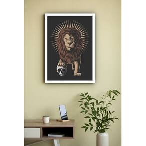 Quadro Decorativo Leão Com Caveira - 70x50cm - Cor: Moldura Branca