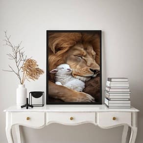 Quadro decorativo leão com cordeiro 24x18cm Cor: moldura branca Informações do produto tire todas as suas dúvidas no descritivo abaixo: decoração para quarto, sala, cozinha, escritório, área gourmet e muito mais. Chega de paredes vazias medidas - cada peça tem 24x18cm a5 . Material do papel - papel fotográfico brilhante de altíssima resolução acabamento - todos os quadros são acompanhados de uma película de acetato para proteção da imagem. - os quadros são embalados de forma segura com plástico bolha com camada dupla de acordo com o tamanho dos quadros. - de 3 meses. Meu quadro chegou. Como posso fixá-lo Você precisa apenas de um martelo e um prego, pois os quadros já vão acompanhados de penduradores. Esta é a forma mais indicada. Caso prefira, você pode utilizar uma fita dupla face neste caso, sugerimos de alta qualidade para evitar que descole e seu quadro caia . Como posso limpar meu quadro A limpeza é feita como um móvel comum da sua casa. Apenas um pano seco ou espanador são suficientes para tal