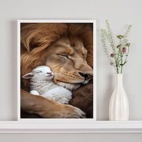 Quadro decorativo leão com cordeiro 45x34cm - com vidro Cor: moldura preta Informações do produto tire todas as suas dúvidas no descritivo abaixo: decoração para quarto, sala, cozinha, escritório, área gourmet e muito mais. Chega de paredes vazias medidas - cada peça tem 45x34cm a3 . Material do papel - papel fotográfico brilhante de altíssima resolução acabamento - todos os quadros são acompanhados de vidro para proteção da imagem. - moldura em madeira maciça na cor preta ou branca conforme produto escolhido e pendurador . - os quadros são embalados de forma segura com plástico bolha com camada dupla de acordo com o tamanho dos quadros. - de 3 meses. Meu quadro chegou. Como posso fixá-lo Você precisa apenas de um martelo e um prego, pois os quadros já vão acompanhados de penduradores. Esta é a forma mais indicada. Como posso limpar meu quadro A limpeza é feita como um móvel comum da sua casa. Apenas um pano seco ou espanador são suficientes para tal