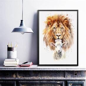 Quadro Decorativo Leão Com Cordeiro Aquarela 24X18Cm