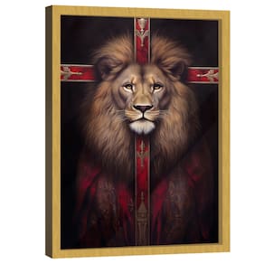 Quadro Decorativo Leão Cruz Vermelha Borda Infinita - 84x54cm -