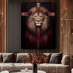 Quadro Decorativo Leão Cruz Vermelha Moldura Preta e Vidro - 150x100cm -