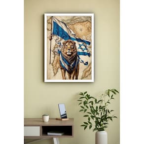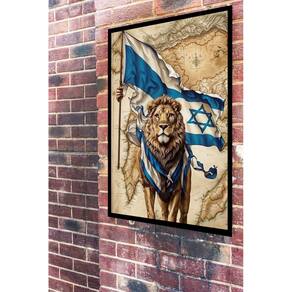 Quadro Decorativo Leão de Judá Bandeira - 70x50cm - Cor: Moldura Preta