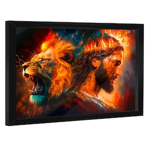 Quadro Decorativo Leão de Judá e Cristo Moldura Preta - 150x100cm -