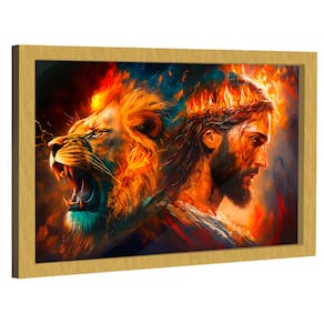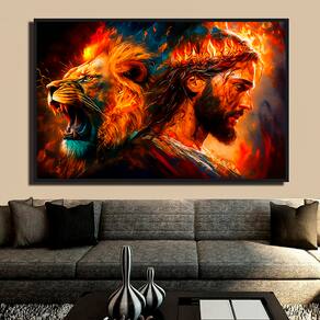 Quadro Decorativo Leão de Judá e Cristo Moldura Preta - 180x105cm -