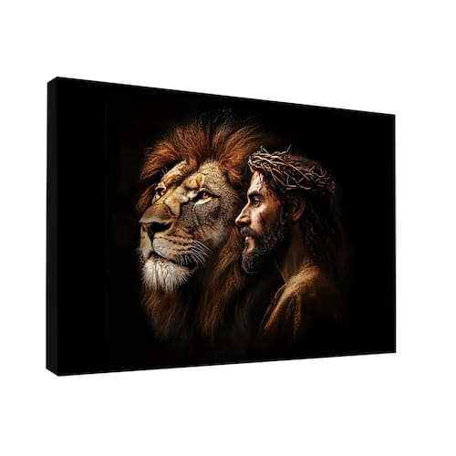 Quadro Decorativo Leão Divino e Jesus Borda Infinita - 118x78cm -
