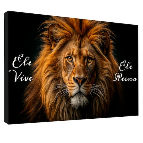 Quadro Decorativo Leão Ele Vive, Ele Reina Borda Infinita - 84x54cm -