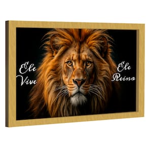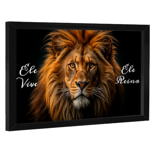 Quadro Decorativo Leão Ele Vive, Ele Reina Moldura Preta - 60x40cm -