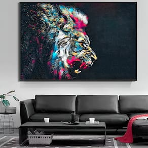 Quadro Decorativo Leão Estilo Pintura Borda Infinita - 84x54cm -