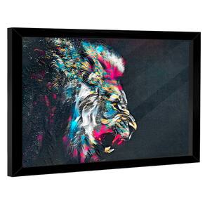 Quadro Decorativo Leão Estilo Pintura Moldura Preta - 150x100cm -