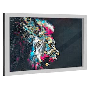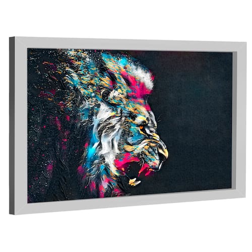 Quadro Decorativo Leão Estilo Pintura Moldura Branca - 118x78cm -