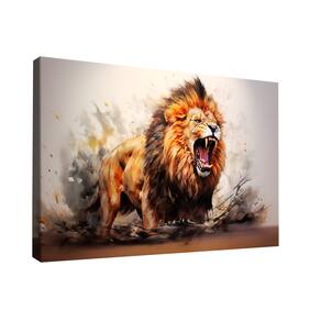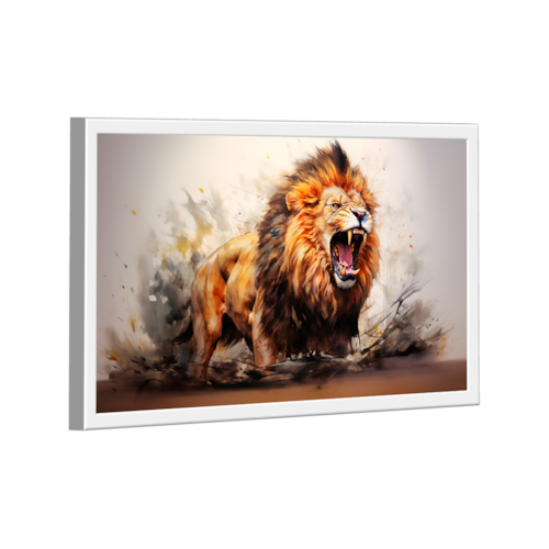 Quadro Decorativo Leão Majestoso Aquarela Moldura Branca - Ultra Grande 150x100 -