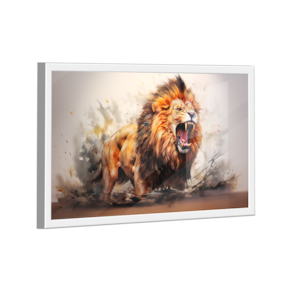 Quadro Decorativo Leão Majestoso Aquarela Moldura Branca e Vidro - Pequeno 60x40 -