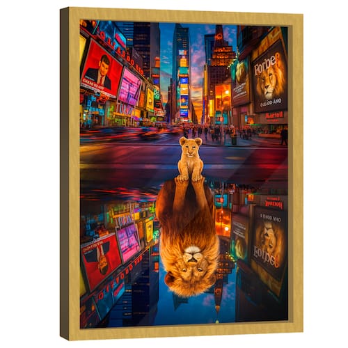 Quadro Decorativo Leão Mindset é Tudo Moldura Dourada e Vidro - 118x78cm -