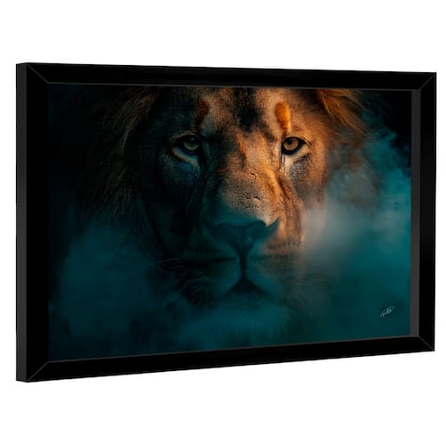 Quadro Decorativo Leão na Fumaça Moldura Preta - 84x54cm -