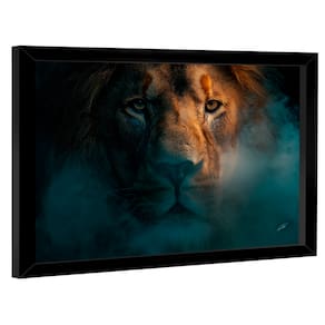 Quadro Decorativo Leão na Fumaça Moldura Preta - 150x100cm -