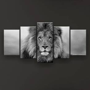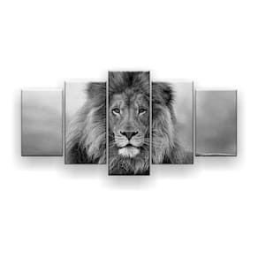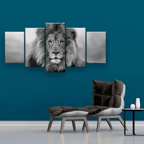 Quadro Decorativo Leão Preto E Branco 129x61 Sala Quarto