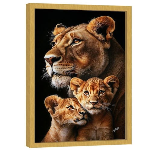 Quadro Decorativo Leoa E Dois Filhotes Quadro Decorativo Leoa e Dois Filhotes Moldura Dourada - 84x54cm - Especificações