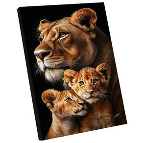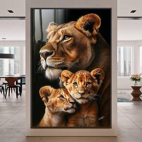 Quadro Decorativo Leoa E Dois Filhotes Quadro Decorativo Leoa e Dois Filhotes Moldura Preta - 84x54cm - Especificações