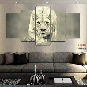 Quadro Decorativo Leoa Preto e Branco 130x63 em tecido