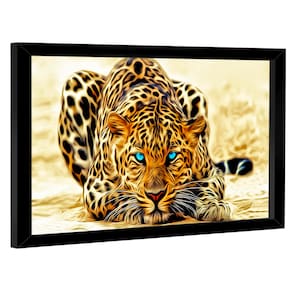 Quadro Decorativo Leopardo Olhos Azuis Moldura Preta - 84x54cm -