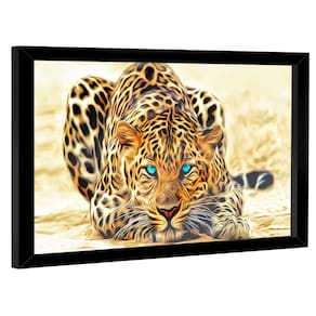Quadro Decorativo Leopardo Olhos Azuis Moldura Preta e Vidro - 118x78cm -