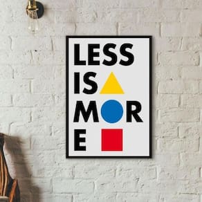 Quadro decorativo less is more 24x18cm Moldura: madeira branca Informações do produto tire todas as suas dúvidas no descritivo abaixo: decoração para quarto, sala, cozinha, escritório, área gourmet e muito mais. Chega de paredes vazias medidas - cada peça tem 24x18cm a5 . Material do papel - papel fotográfico brilhante de altíssima resolução acabamento - todos os quadros são acompanhados de uma película de acetato para proteção da imagem. - os quadros são embalados de forma segura com plástico bolha com camada dupla de acordo com o tamanho dos quadros. Garantia - garantia de 3 meses. Meu quadro chegou. Como posso fixá-lo Você precisa apenas de um martelo e um prego, pois os quadros já vão acompanhados de penduradores. Esta é a forma mais indicada. Caso prefira, você pode utilizar uma fita dupla face neste caso, sugerimos de alta qualidade para evitar que descole e seu quadro caia . Como posso limpar meu quadro A limpeza é feita como um móvel comum da sua casa. Apenas um pano seco ou espanador são suficientes para tal