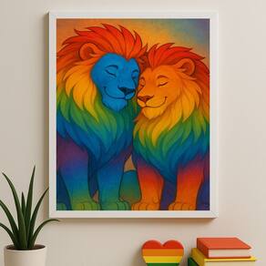 Quadro Decorativo LGBT Casal de Leões Gay 33x24cm - Cor: Moldura branca
