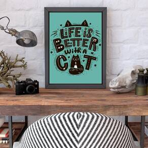 Quadro Decorativo Life Is Better With A Cat 34X23Cm Moldura Branca