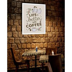 Quadro decorativo life is better with coffee - 70x50cm Cor: moldura branca Informações do produto tire todas as suas dúvidas no descritivo abaixo: decoração para quarto, sala, cozinha, escritório, área gourmet e muito mais. Chega de paredes vazias medidas - cada peça tem 70x50cm . Material do papel - papel fotográfico brilhante de altíssima resolução acabamento - todos os quadros são acompanhados de vidro para proteção da imagem. - moldura em madeira maciça na cor preta ou branca conforme produto escolhido e pendurador. - os quadros são embalados de forma segura com plástico bolha com camada dupla de acordo com o tamanho dos quadros. - de 3 meses. Meu quadro chegou. Como posso fixá-lo Você precisa apenas de um martelo e um prego, pois os quadros já vão acompanhados de penduradores. Esta é a forma mais indicada. Como posso limpar meu quadro A limpeza é feita como um móvel comum da sua casa. Apenas um pano seco ou espanador são suficientes para tal Marca: Não Informado Ean: 7901039770618