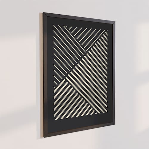 - Largura: 50 - Altura: 70 - "cor" da Armação: Preto e Branco - Quadros Decorativos: Fundo em mdf com acabamento da moldura em madeira com revestimento em polietileno - Temática do Quadro: Abstrato
