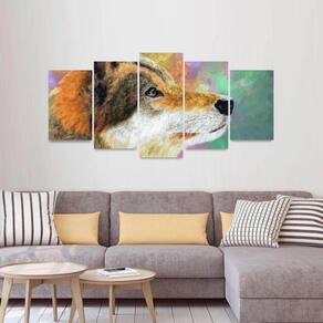 Quadro decorativo Lobo Artístico Colorido Mosaico 5 Peças
