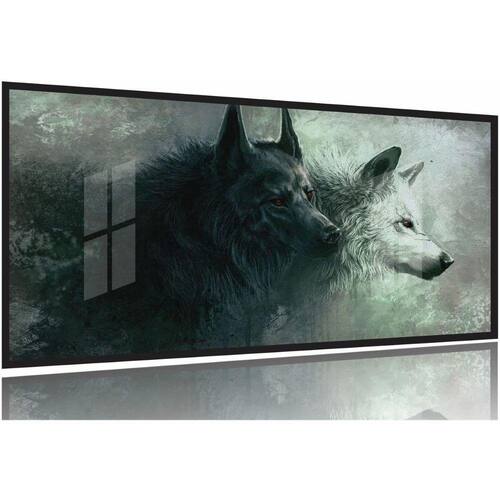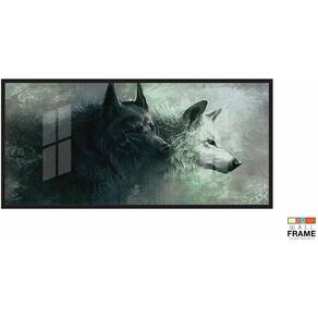 Quadro Decorativo Lobo Uivando Mosaico 130x60 Moldura Preta 2x2