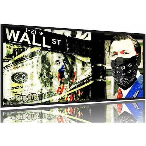 Quadro Decorativo Lobo Wall Street 130x60 Moldura Preta 2x2