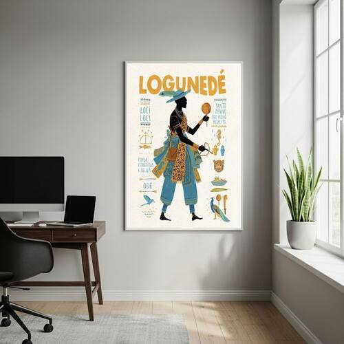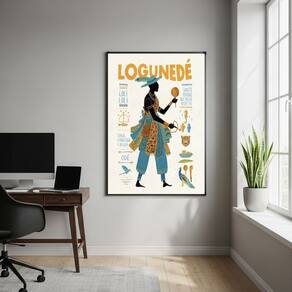 Quadro Decorativo Logunedé - Príncipe dos Orixás - 70x50cm - Cor: Moldura Branca