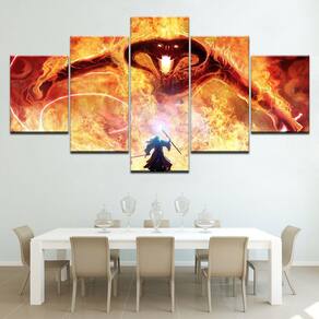Quadro Decorativo Lord of the Rings 5 peças 130x65 cm em tec